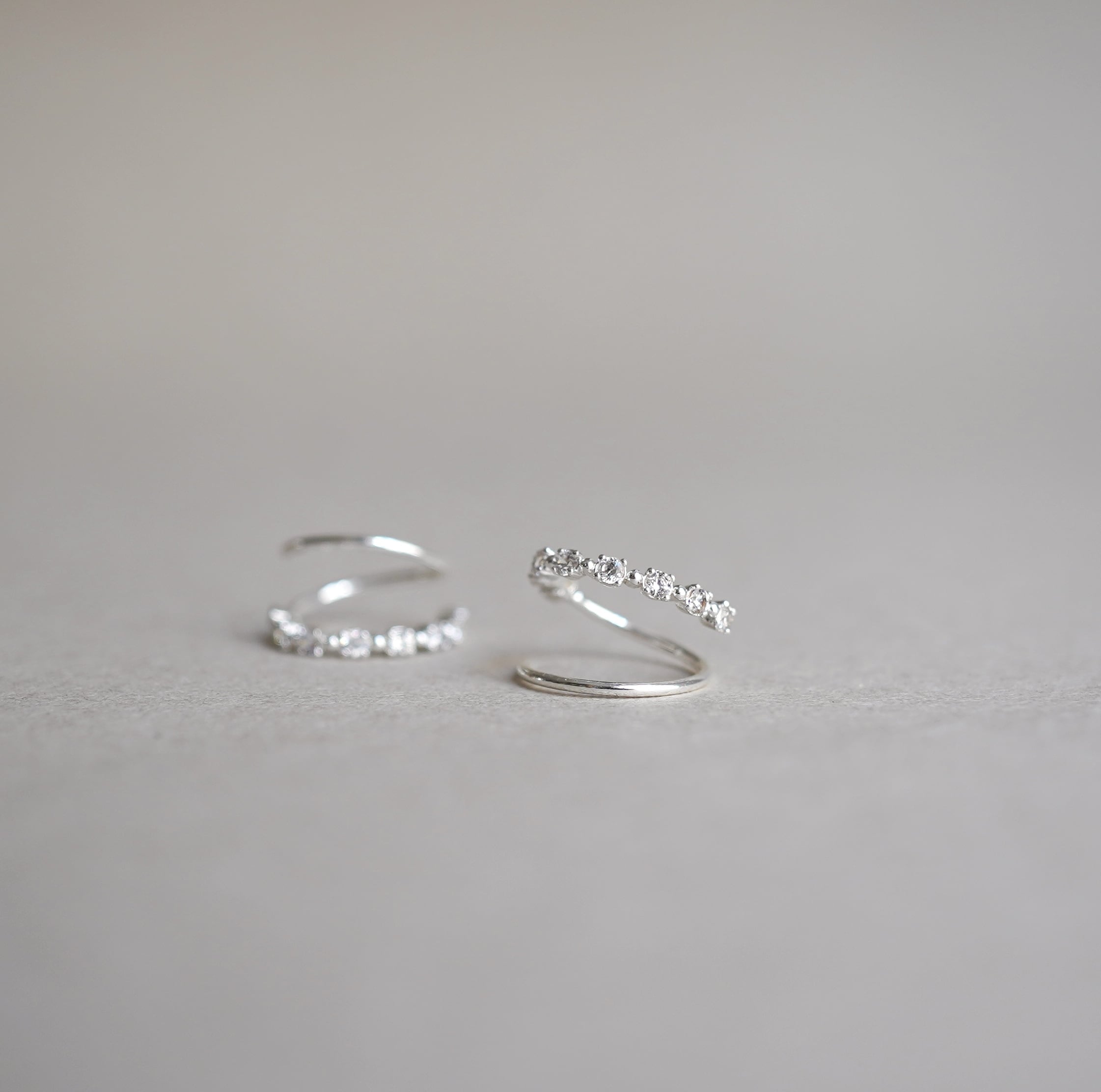 小さなキュービックジルコニアがキラキラと輝き透明感あふれる印象に。