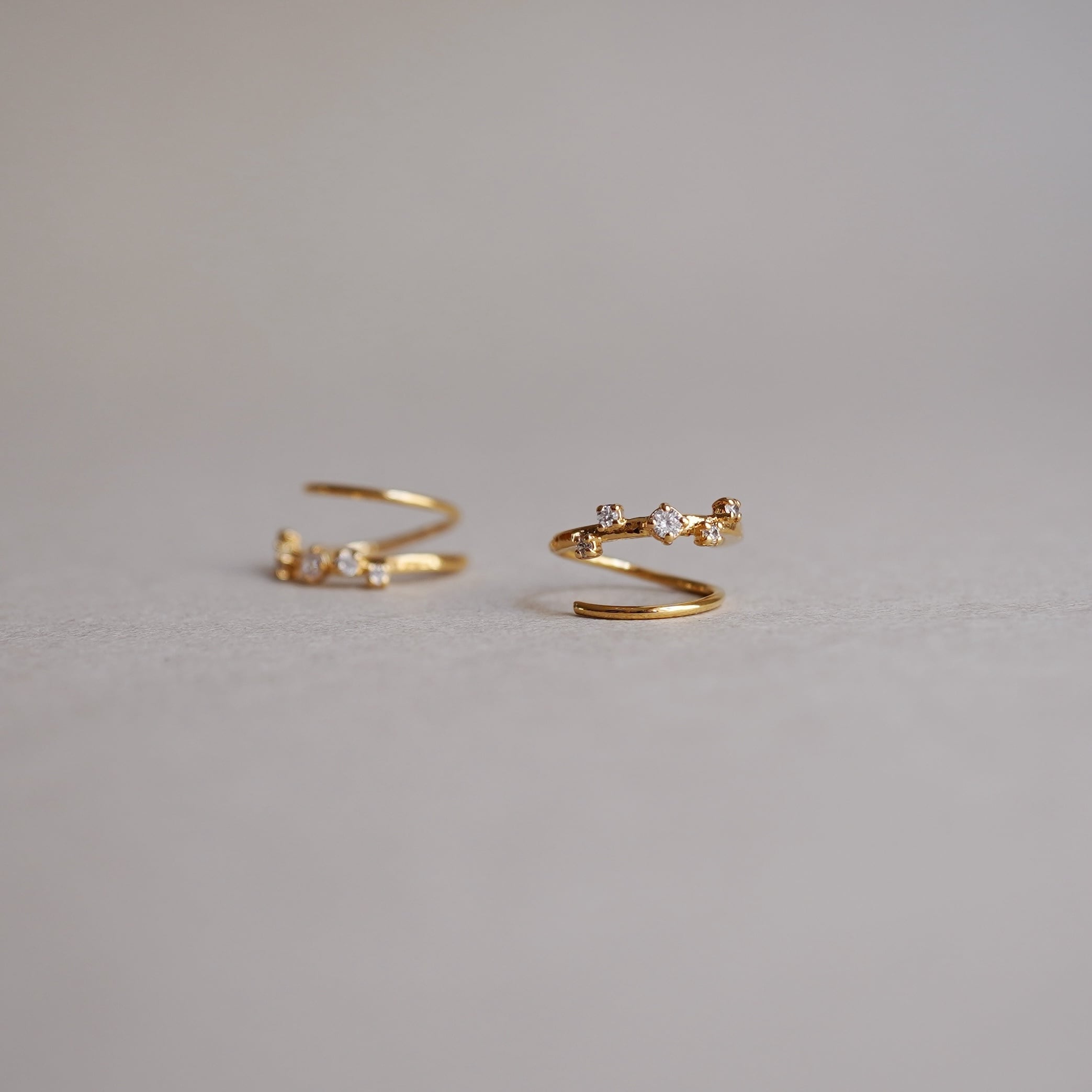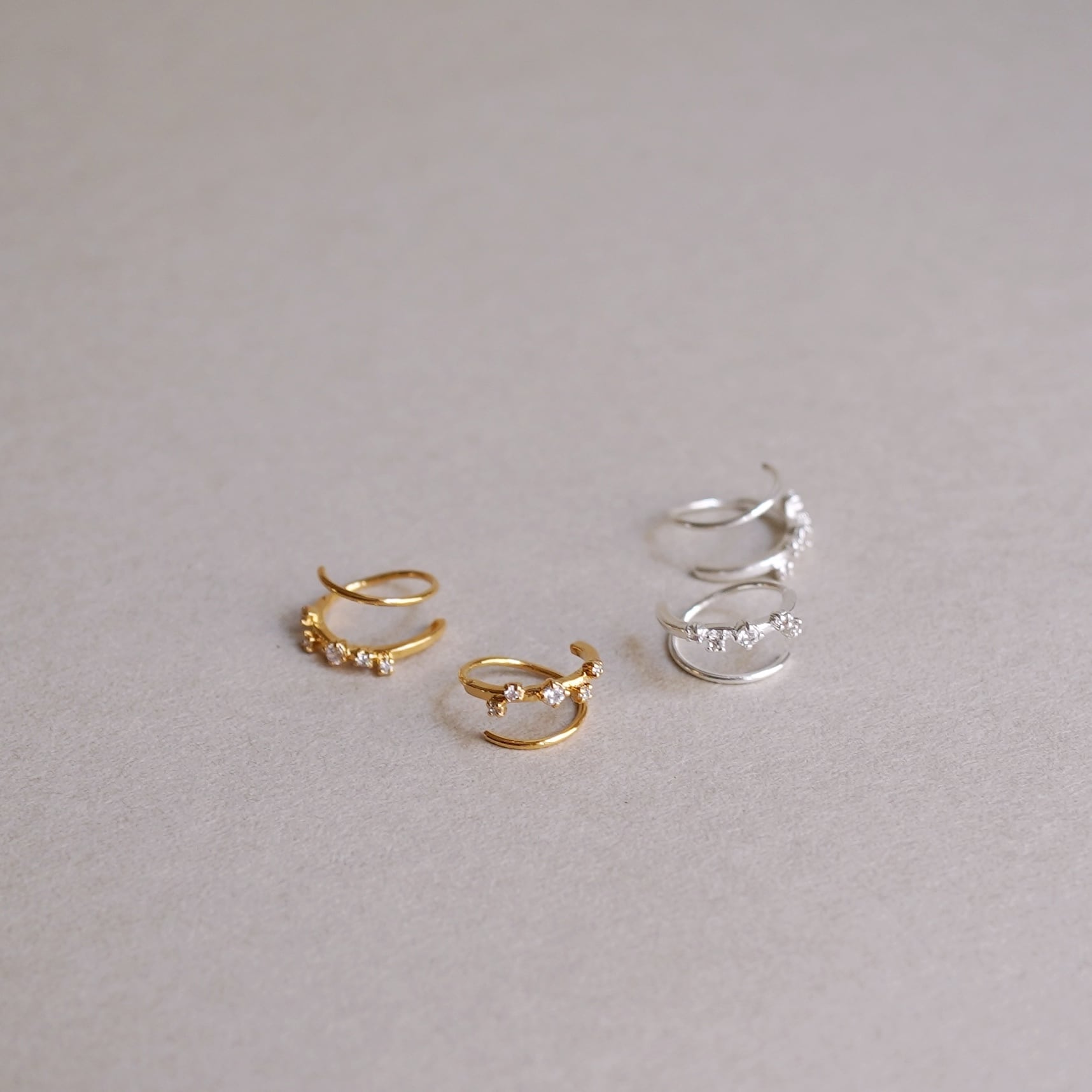 小さなキュービックジルコニアをランダムに散りばめたキラキラと輝くピアス。