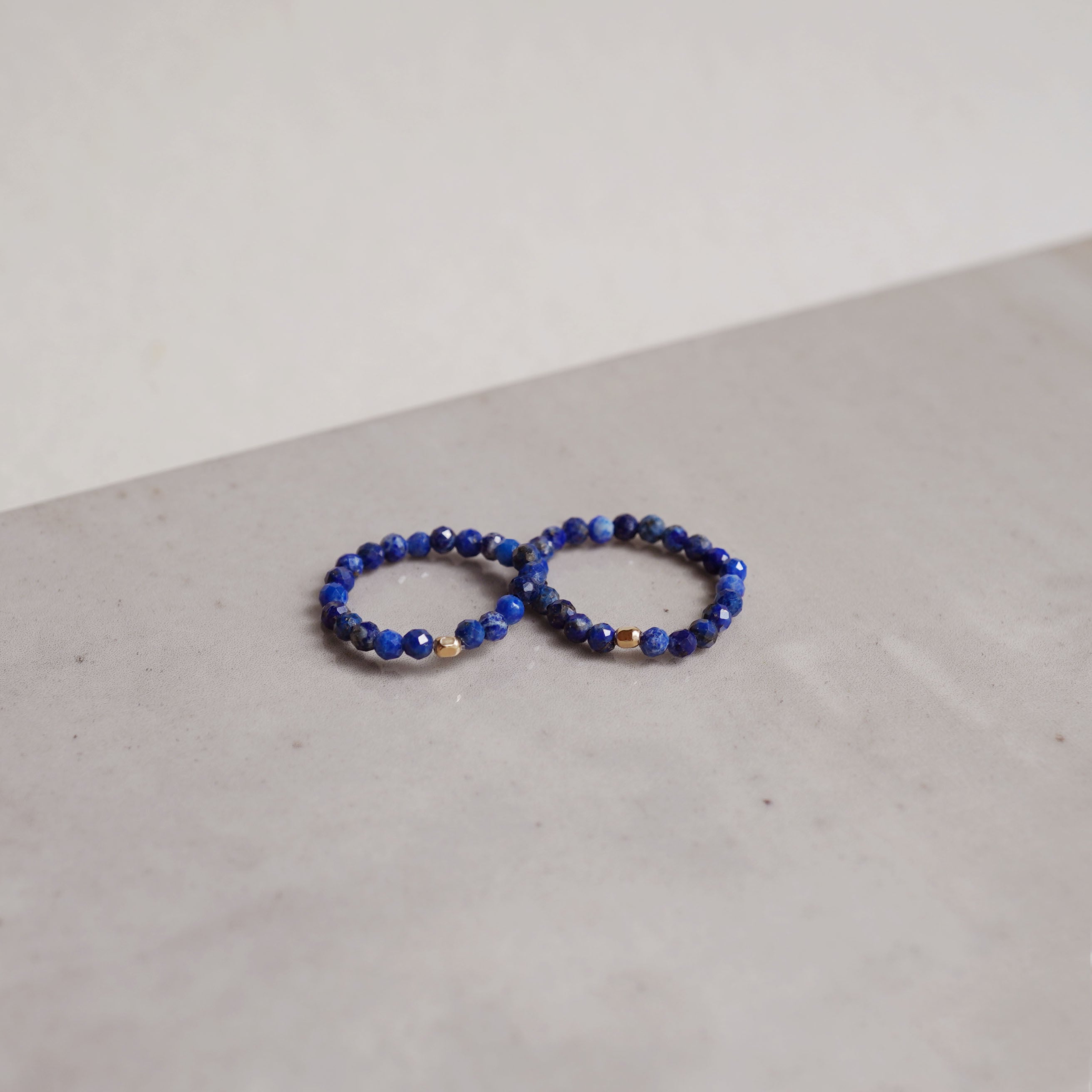 ゴールドビーズが、ラピスラズリの神秘的な色合いを引き立てます。