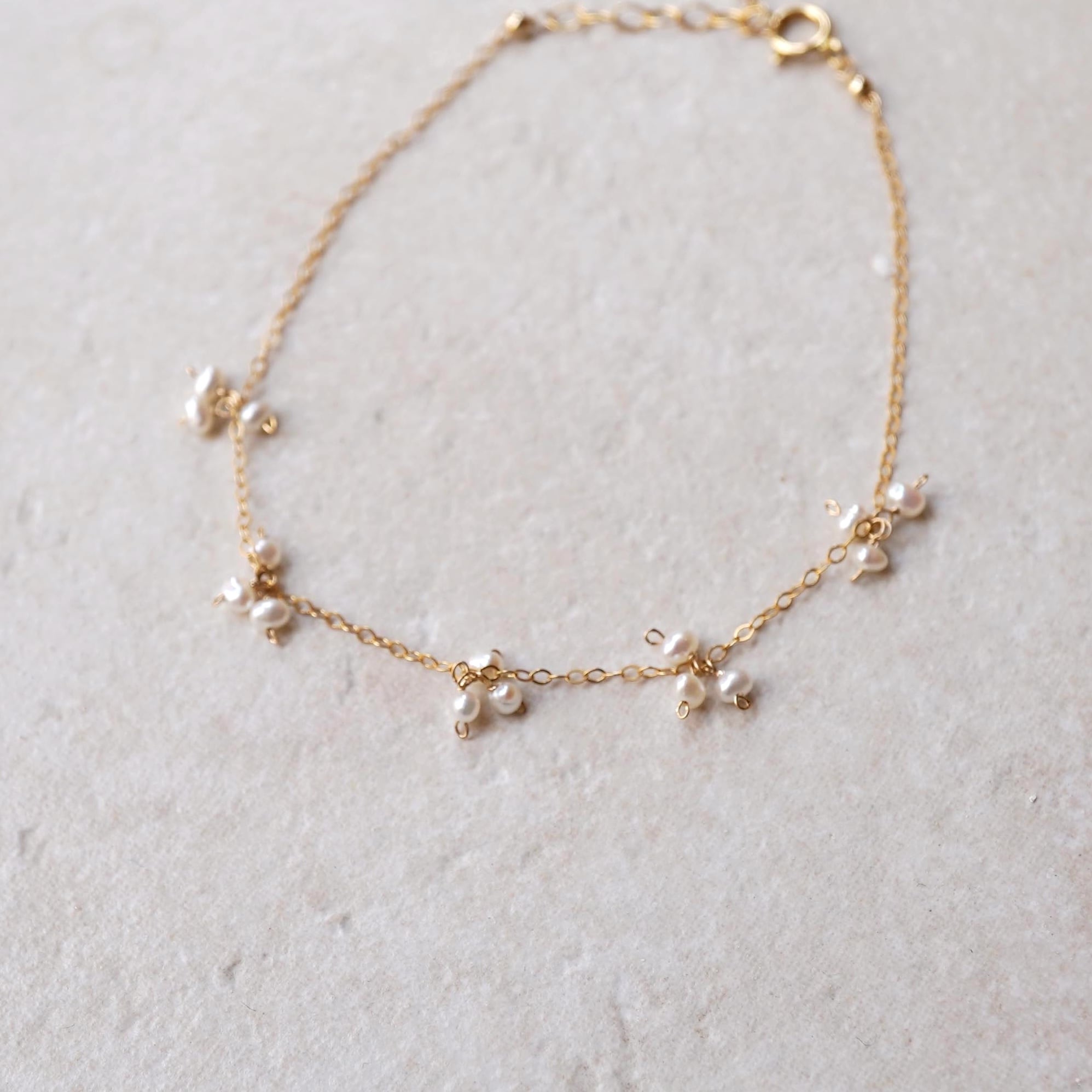 極小サイズの淡水パール/オニキスを3粒ずつあしらったブレスレット。