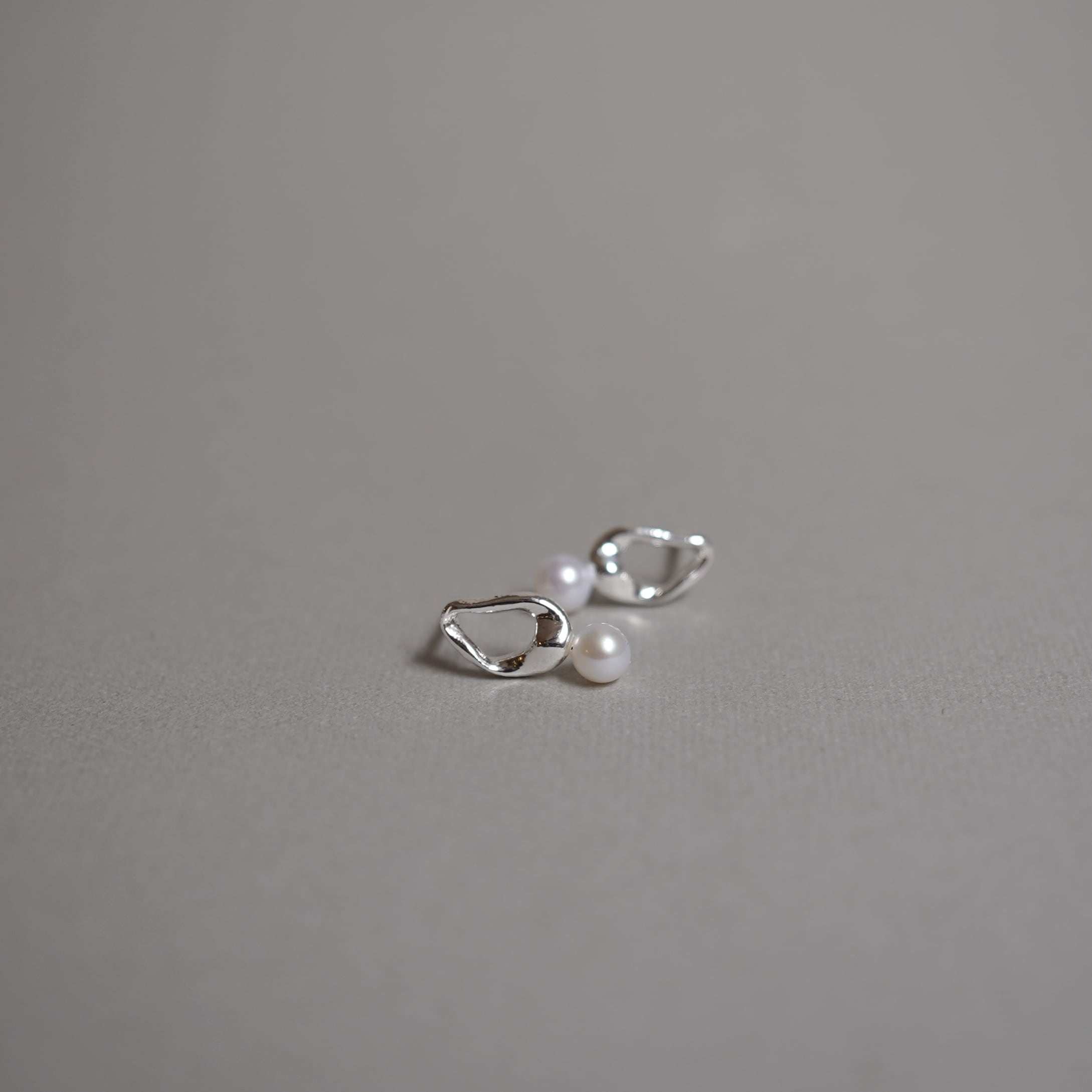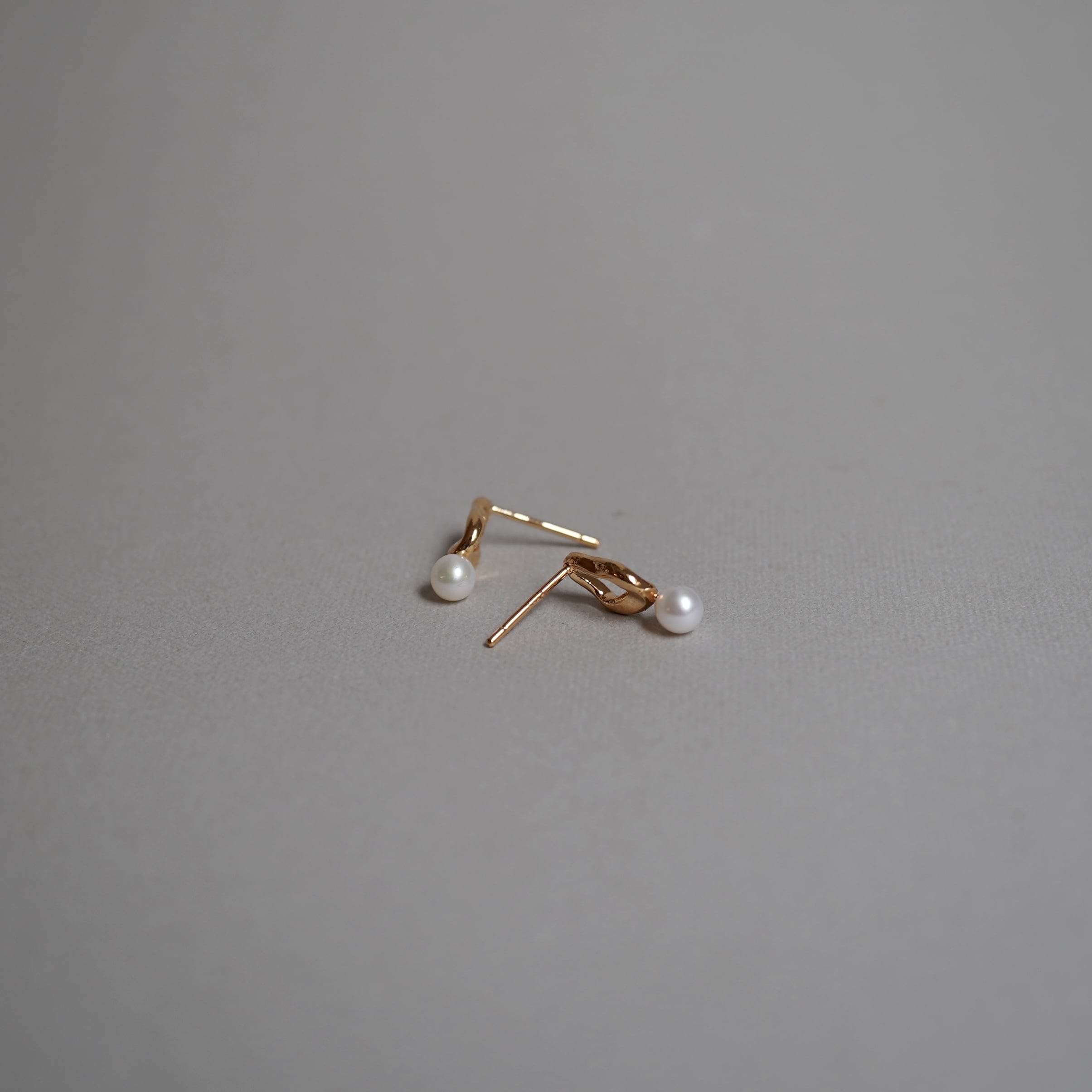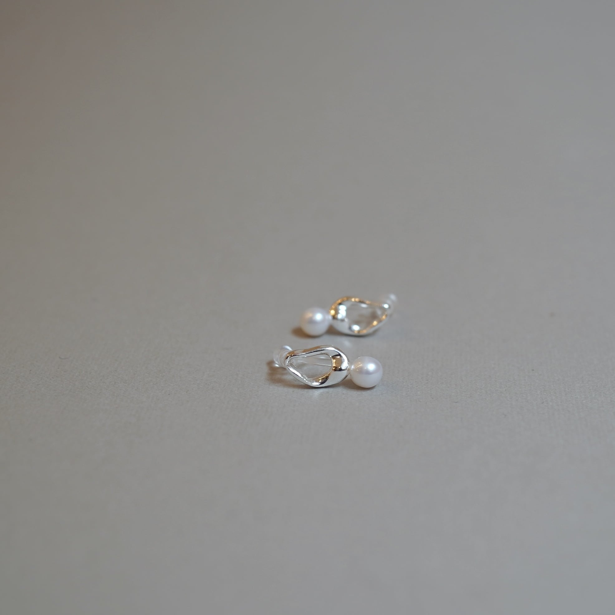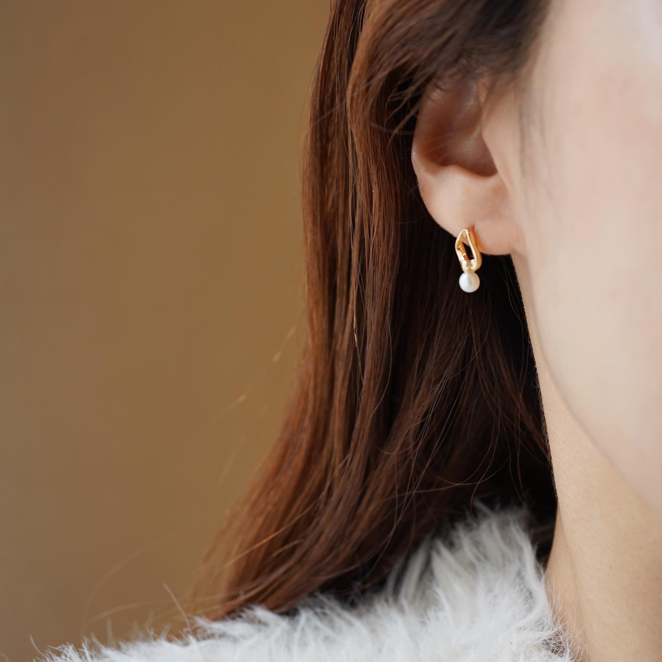 柔らかな曲線を描くフレームに、淡水パールがさりげなく寄り添ったミニマルなピアス。