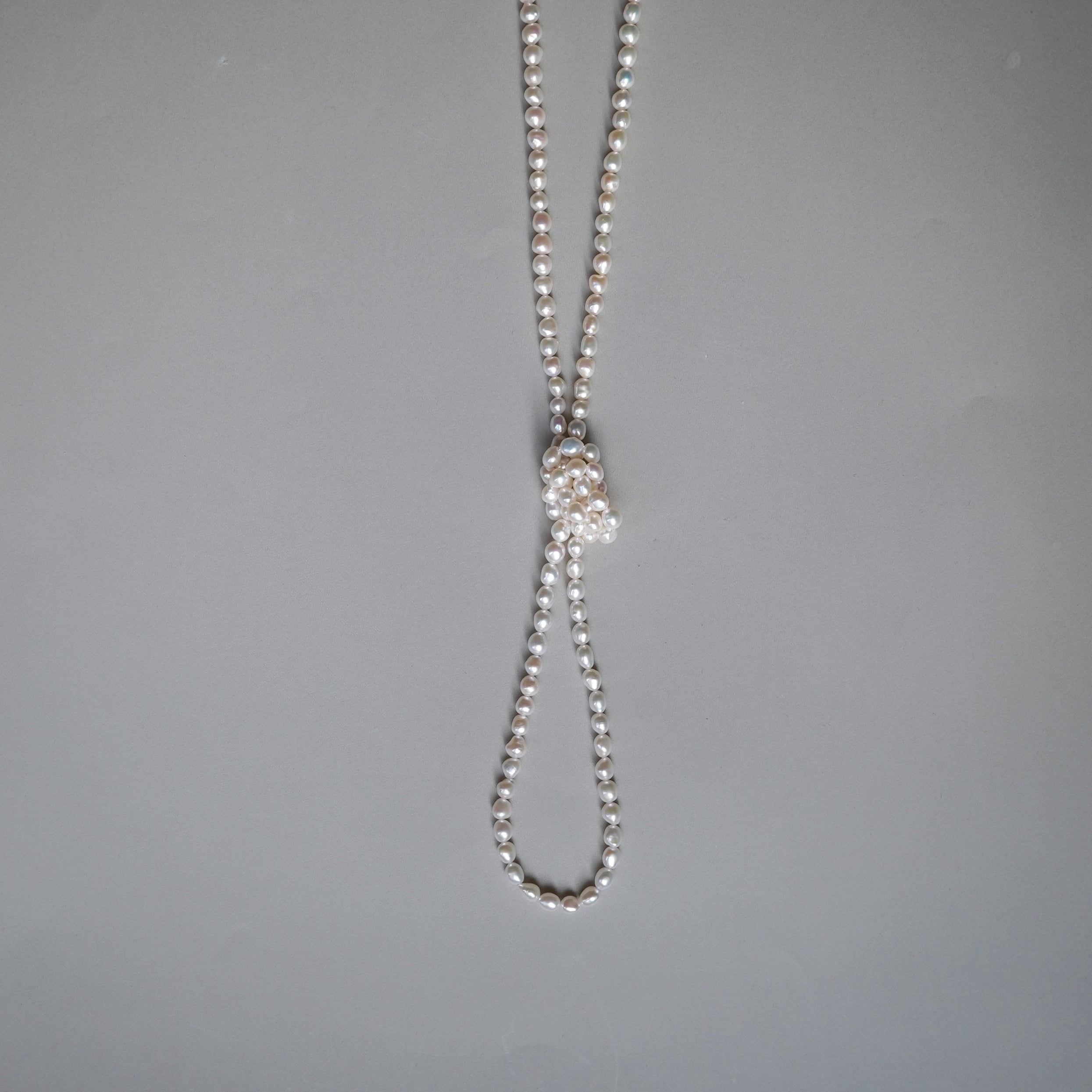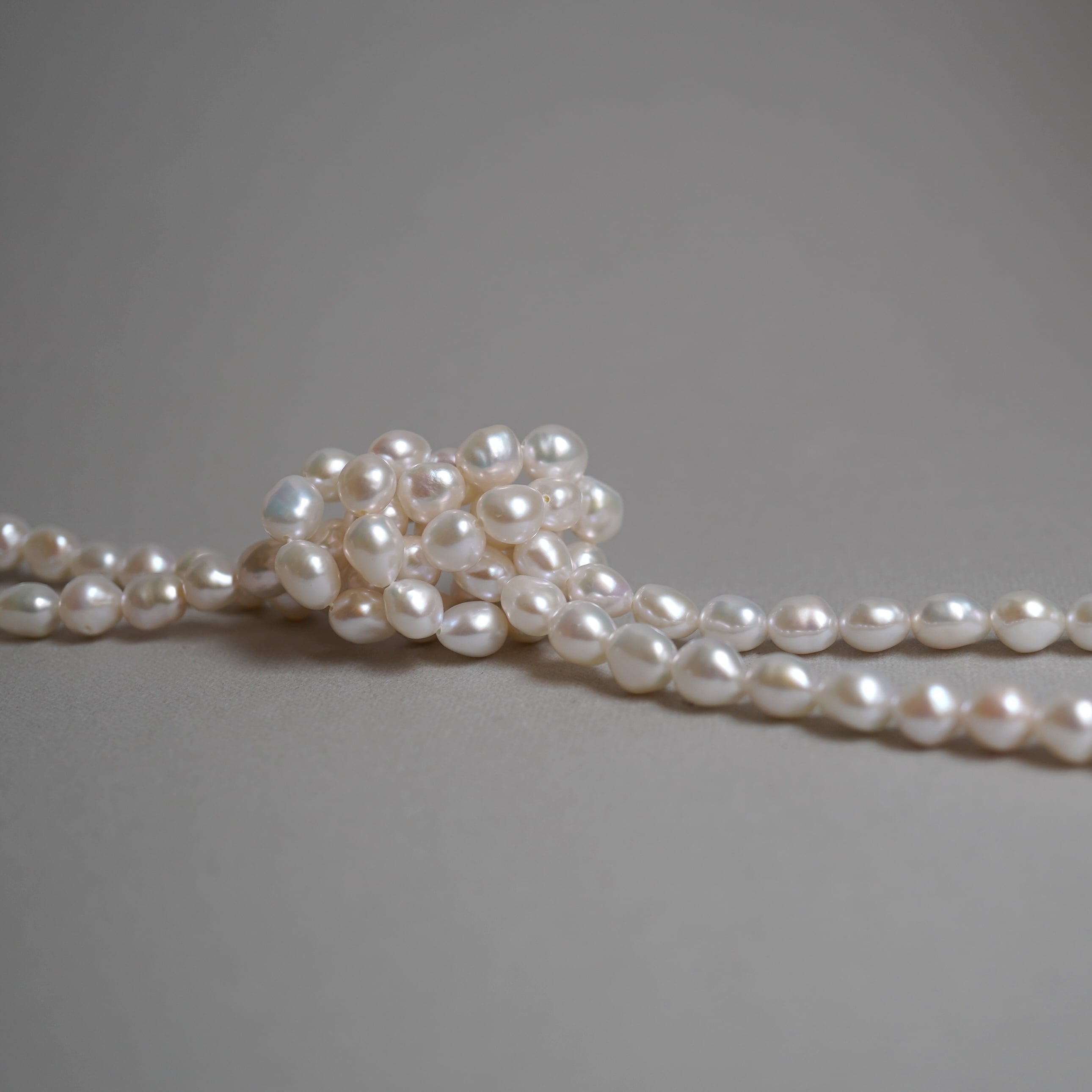 滑らかな色艶の淡水パールを連ねたロングネックレス。