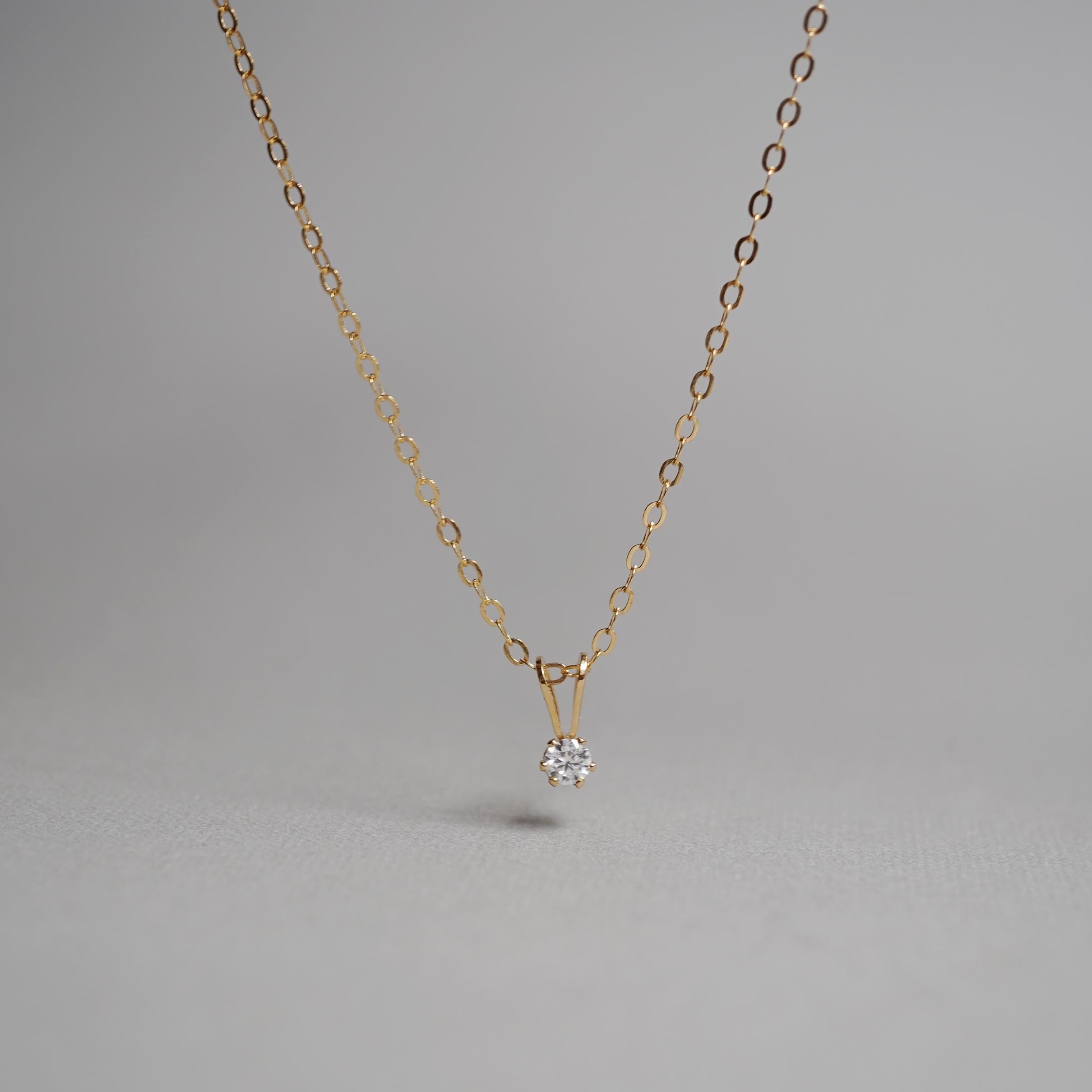 光を受けるたびに、星のような強い輝きを放つモアサナイトを一粒あしらったネックレス。
