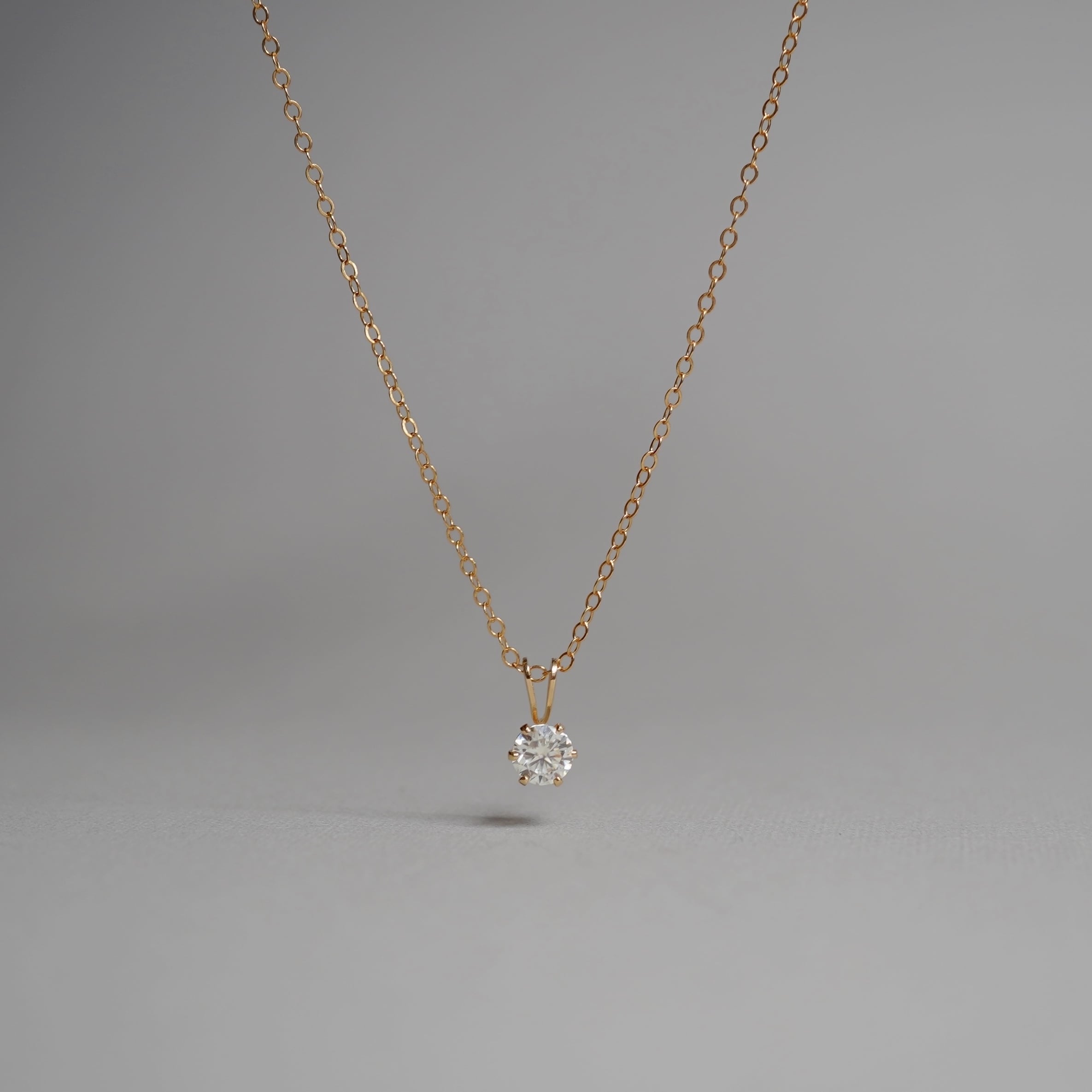 光を受けるたびに、星のような強い輝きを放つモアサナイトを一粒あしらったネックレス。