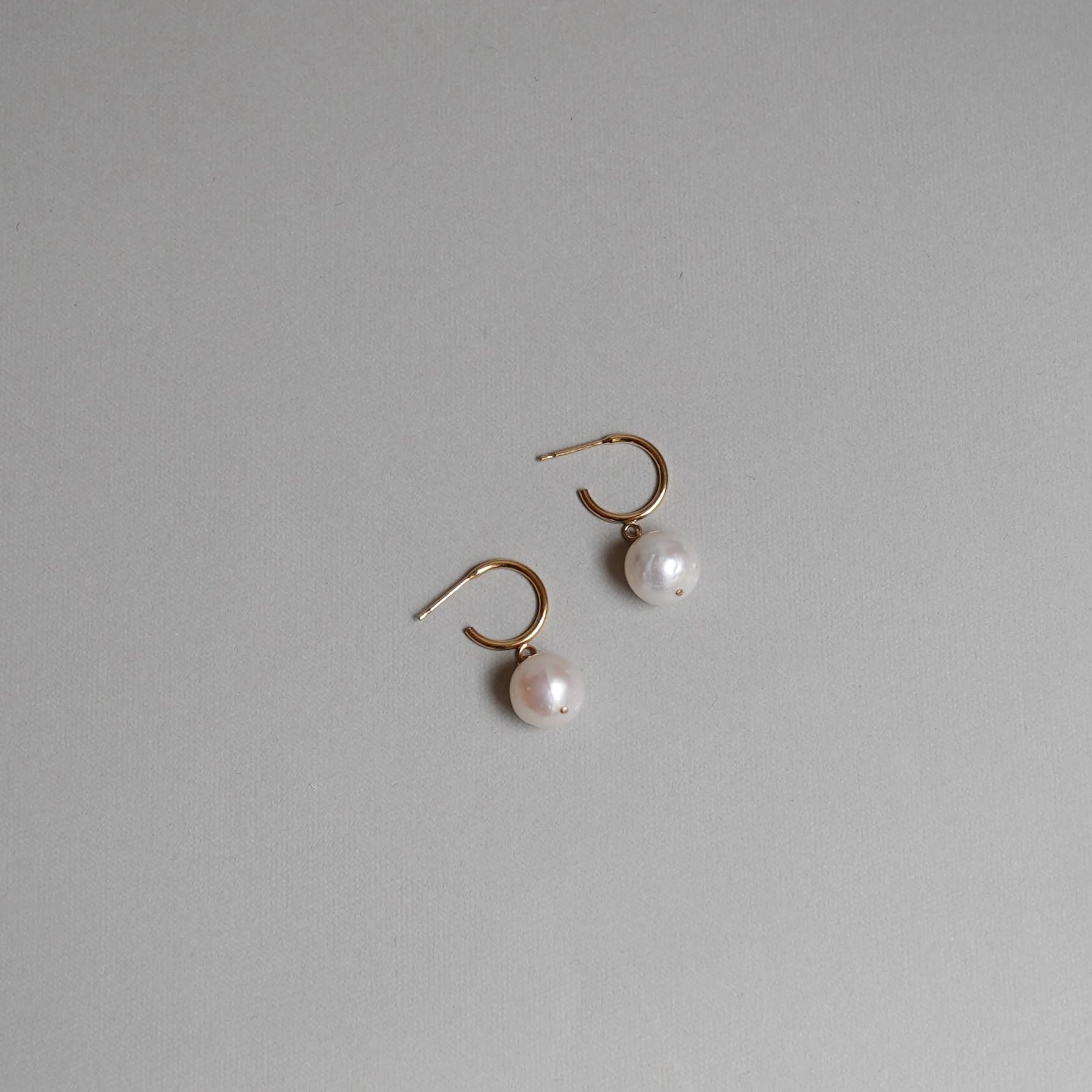 やわらかく輝く大粒淡水パールを、14kgfのフープと合わせた上品なピアス。