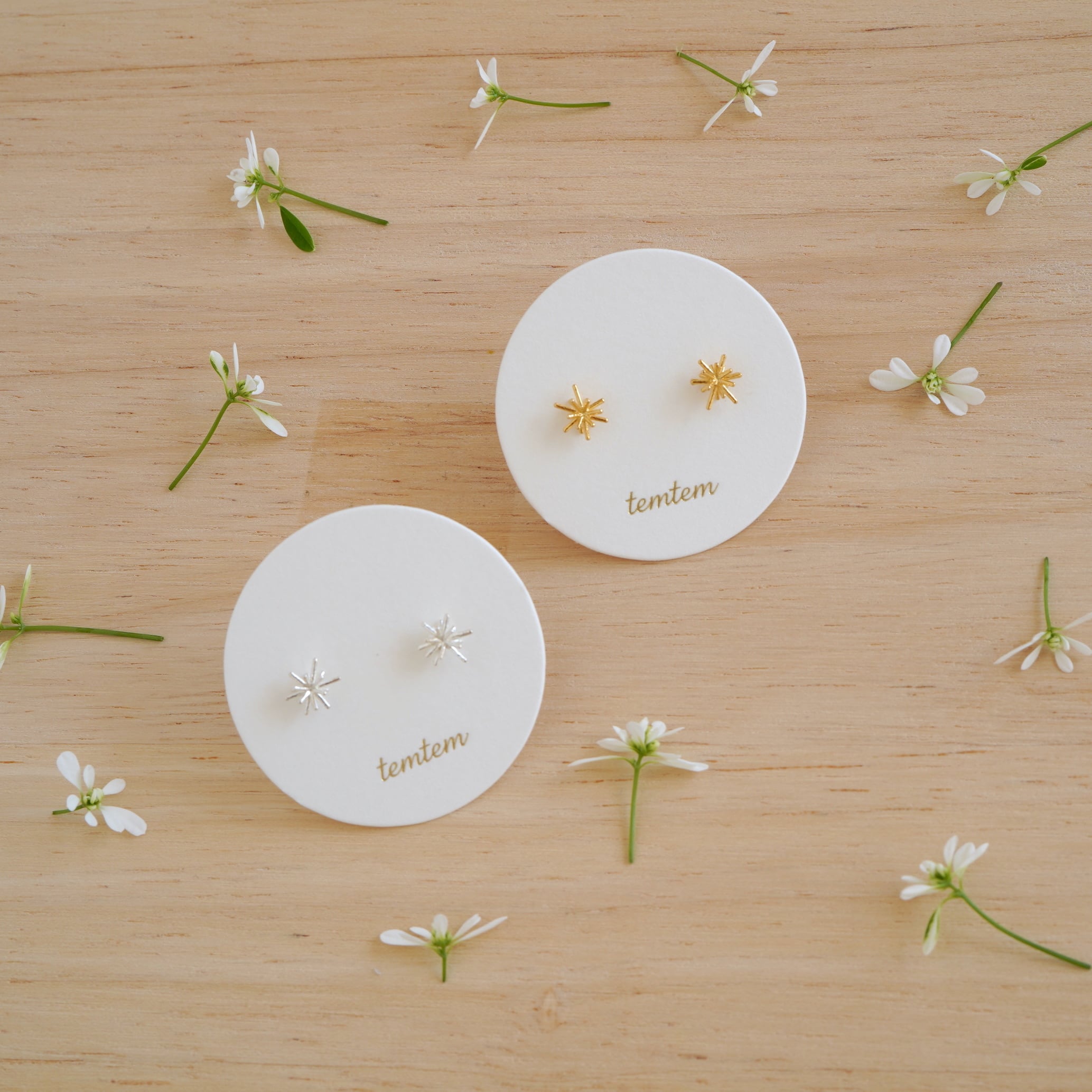 キラキラと夜空を彩るエトワール。小ぶりで大人っぽくも存在感のある星のピアスは普段使いからオフィス、お出かけまで幅広くお使い頂けます。