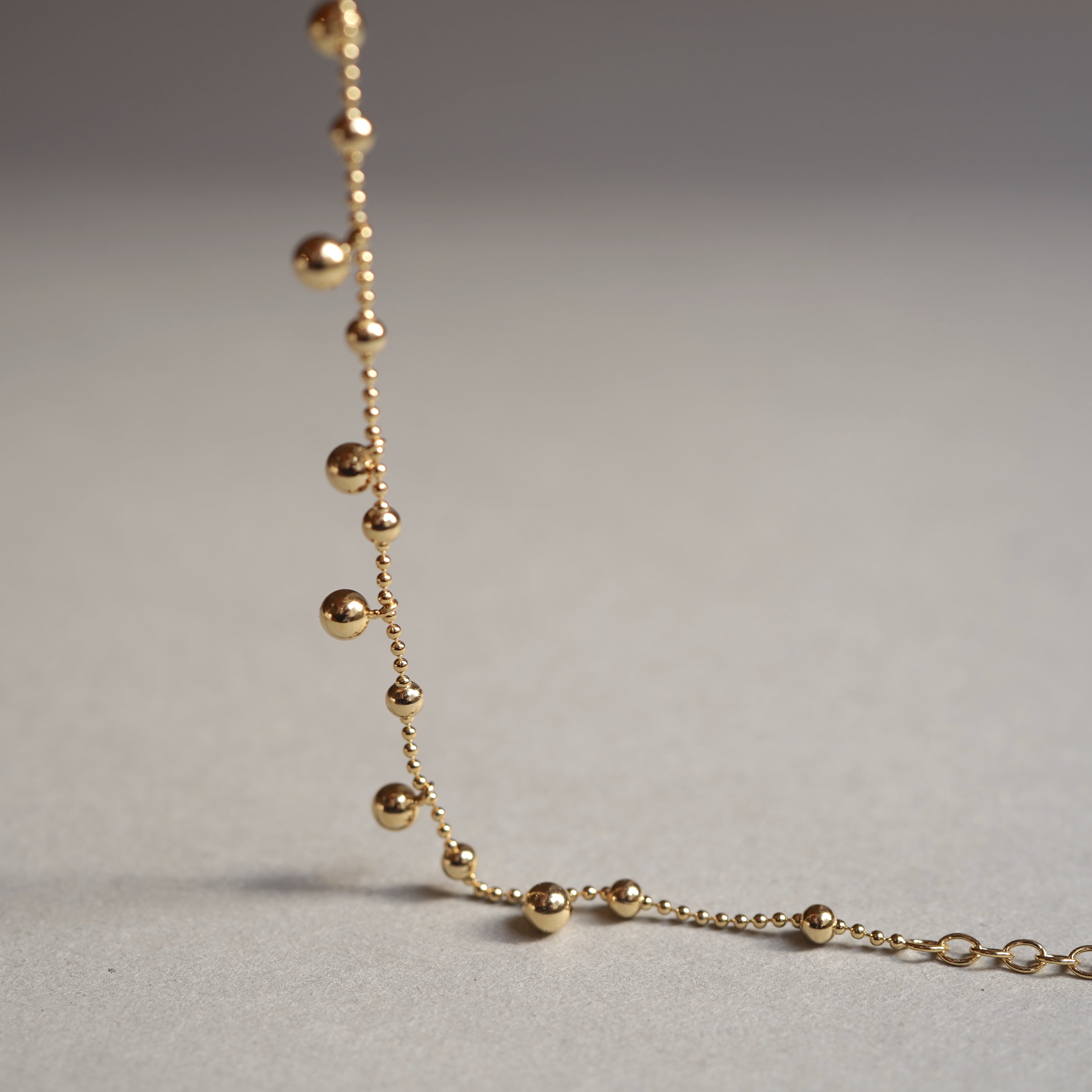 細めのボールチェーンにサイズ違いのボールをあしらったブレスレット。