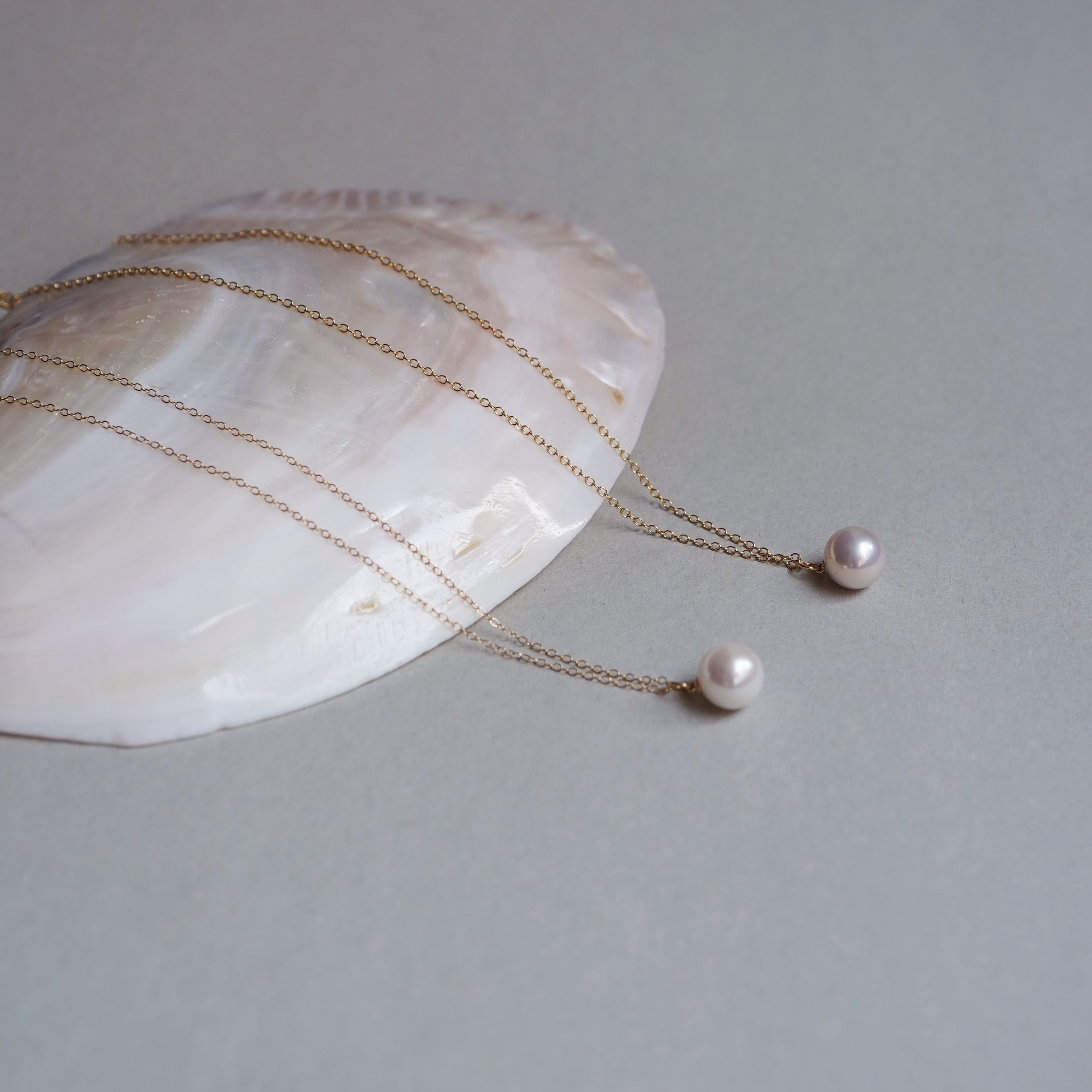 ラウンド淡水パールの一粒ネックレス。