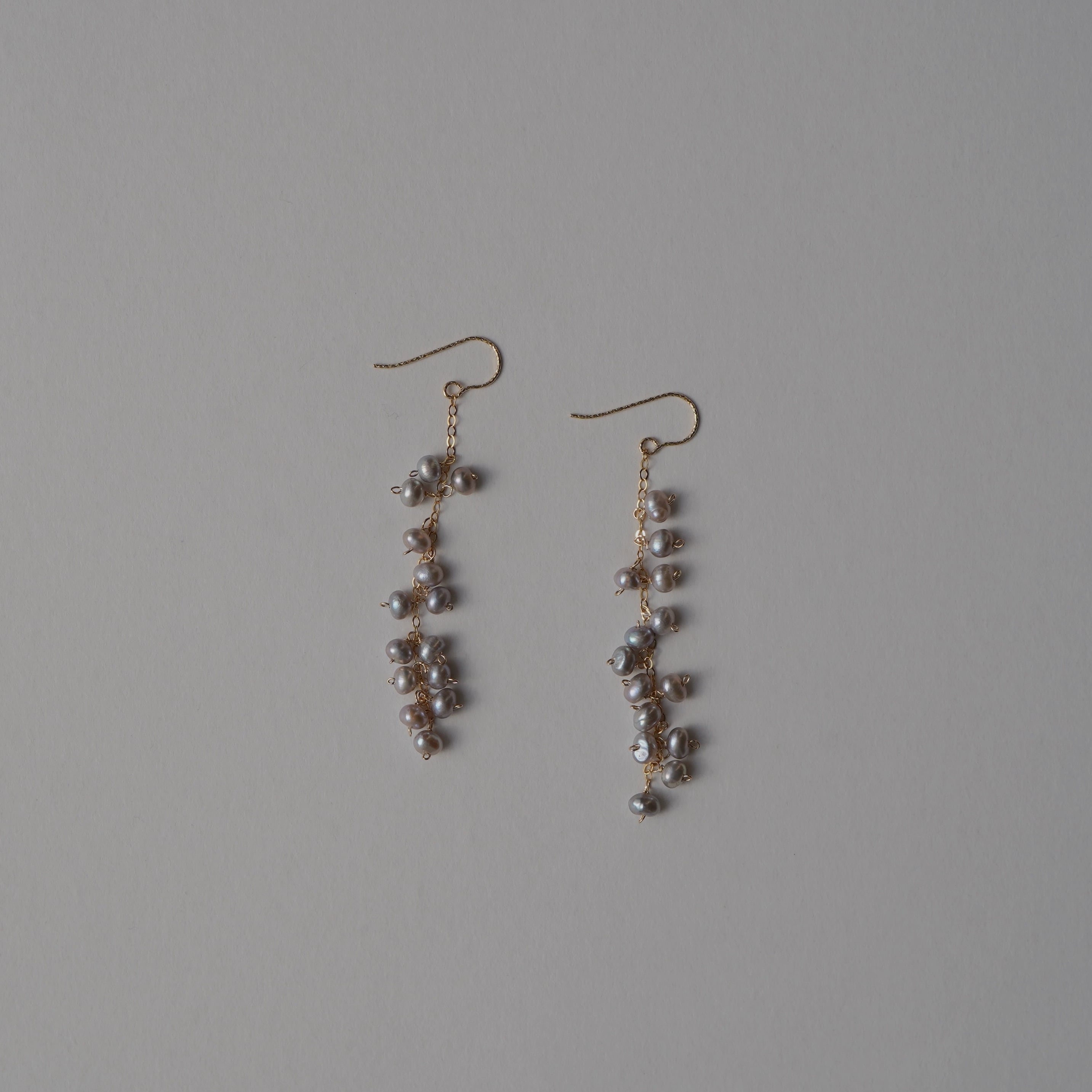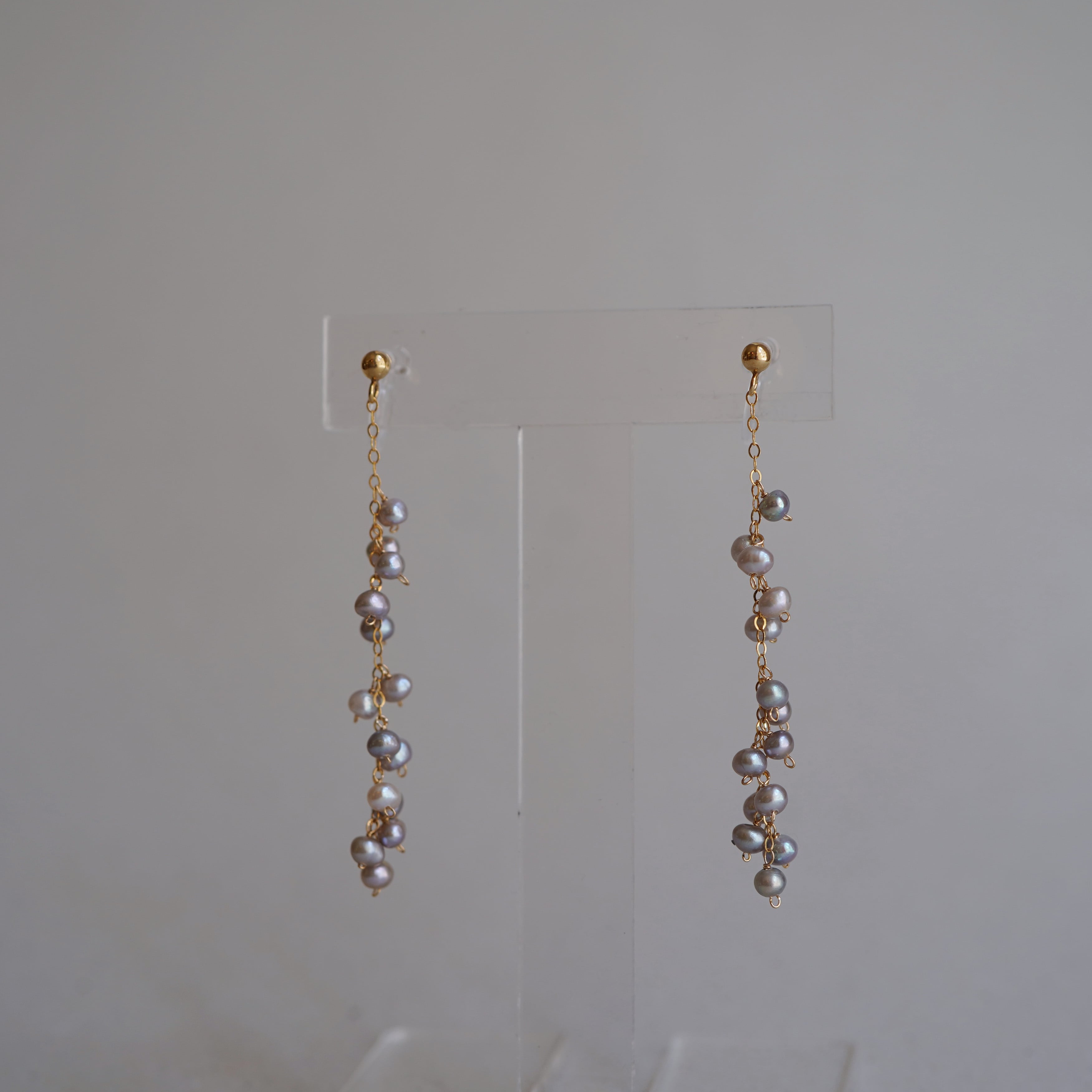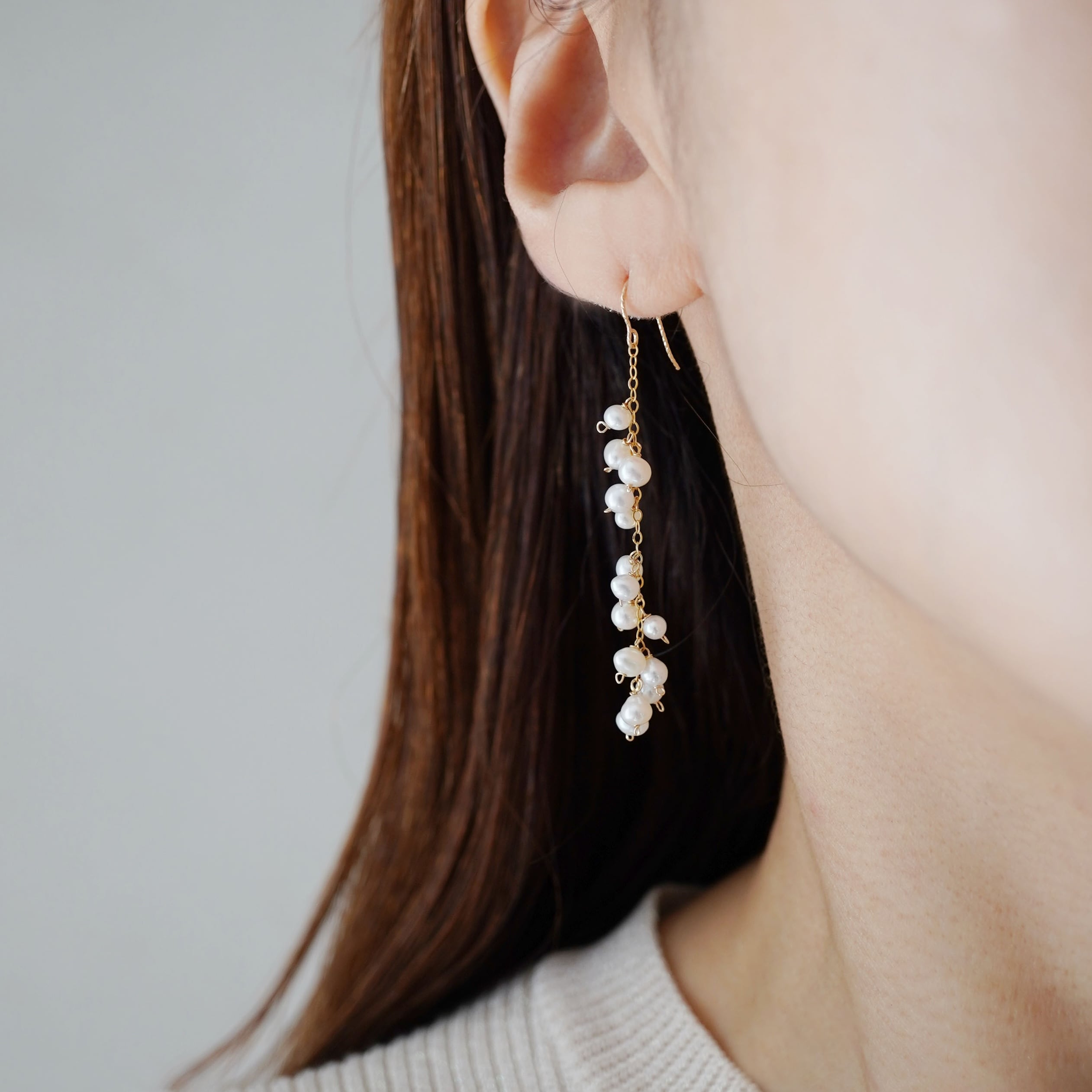小粒の淡水パールを連ねた、軽やかな揺れ感が魅力のロングピアス。