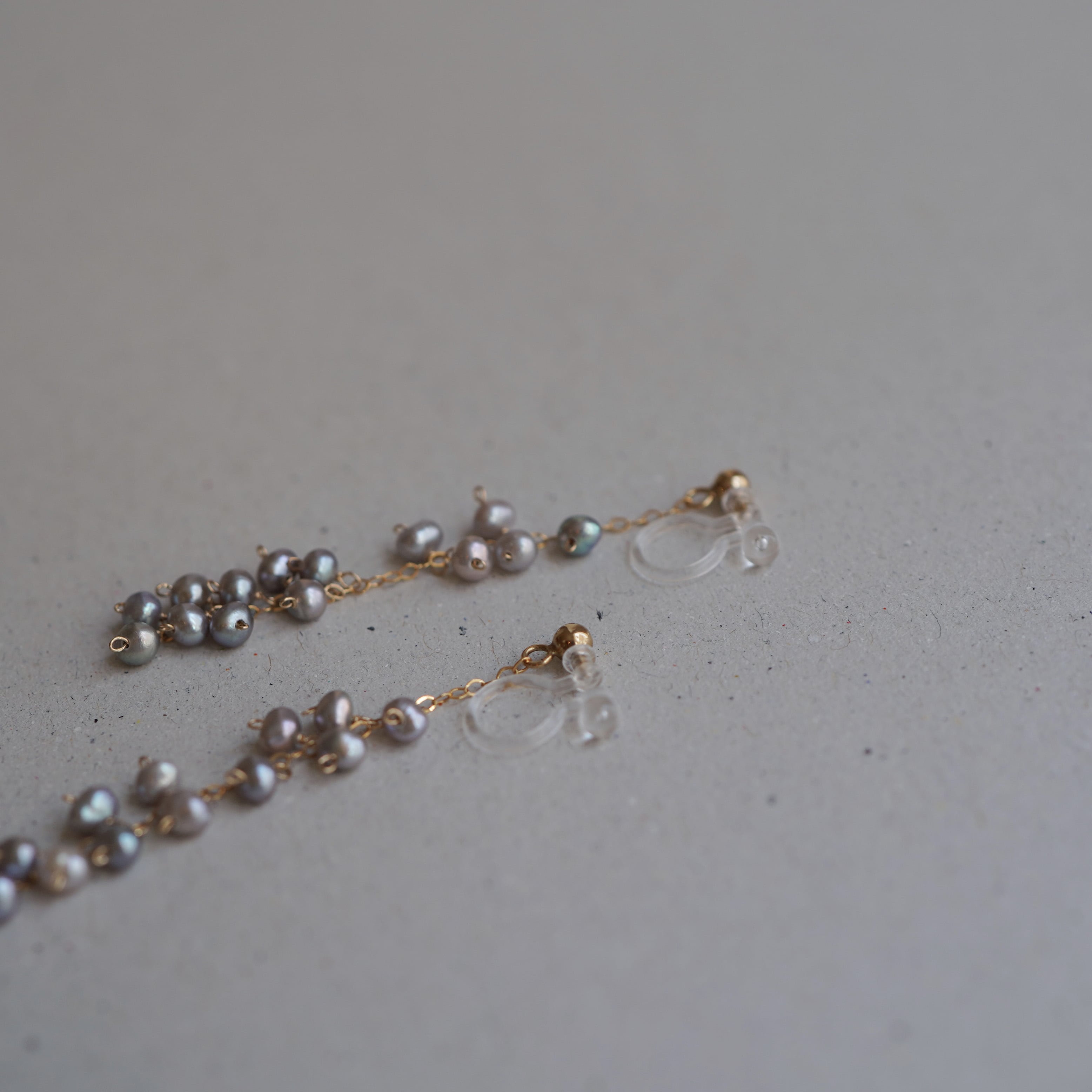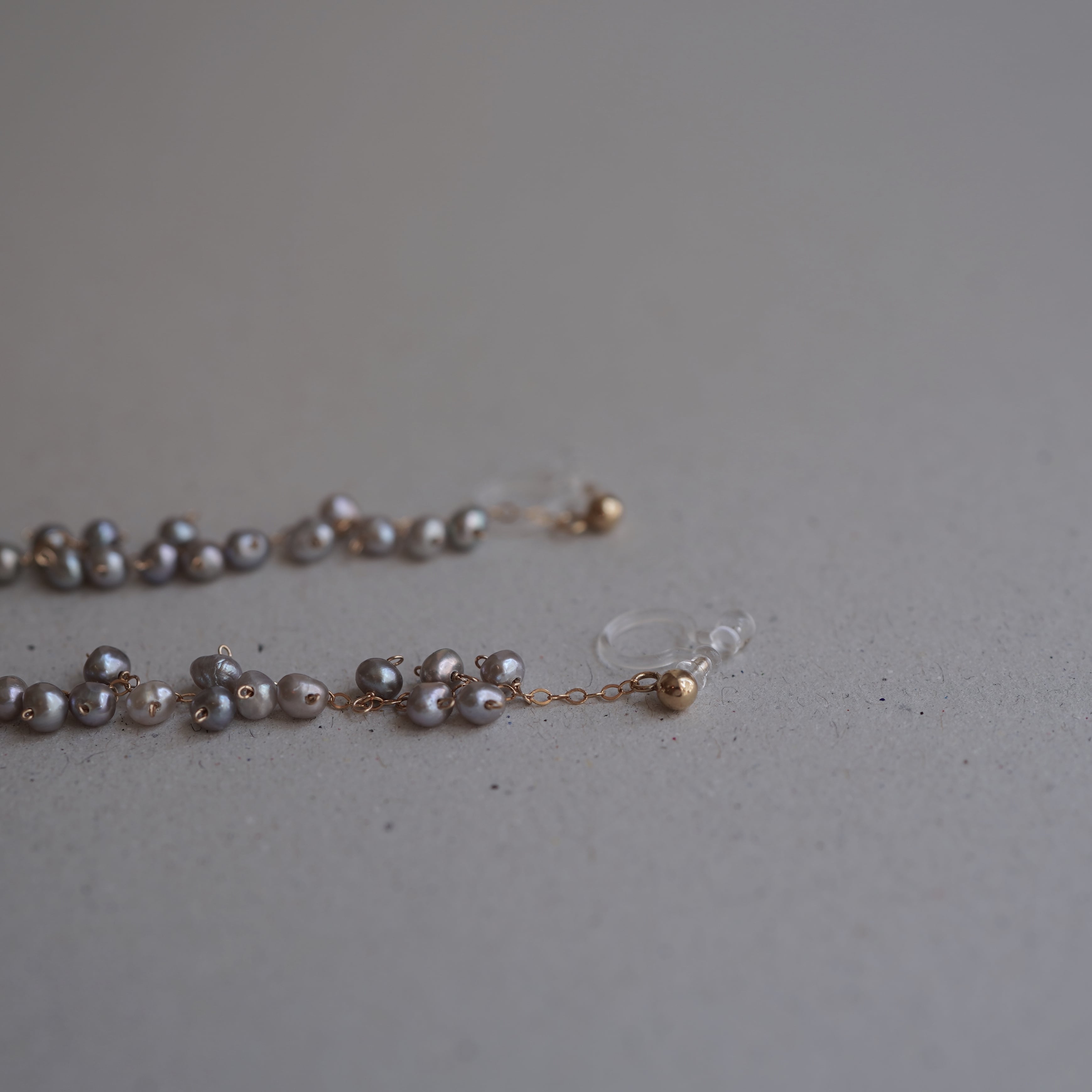 14KGF 淡水パールランダムピアス / イヤリングクリップGY