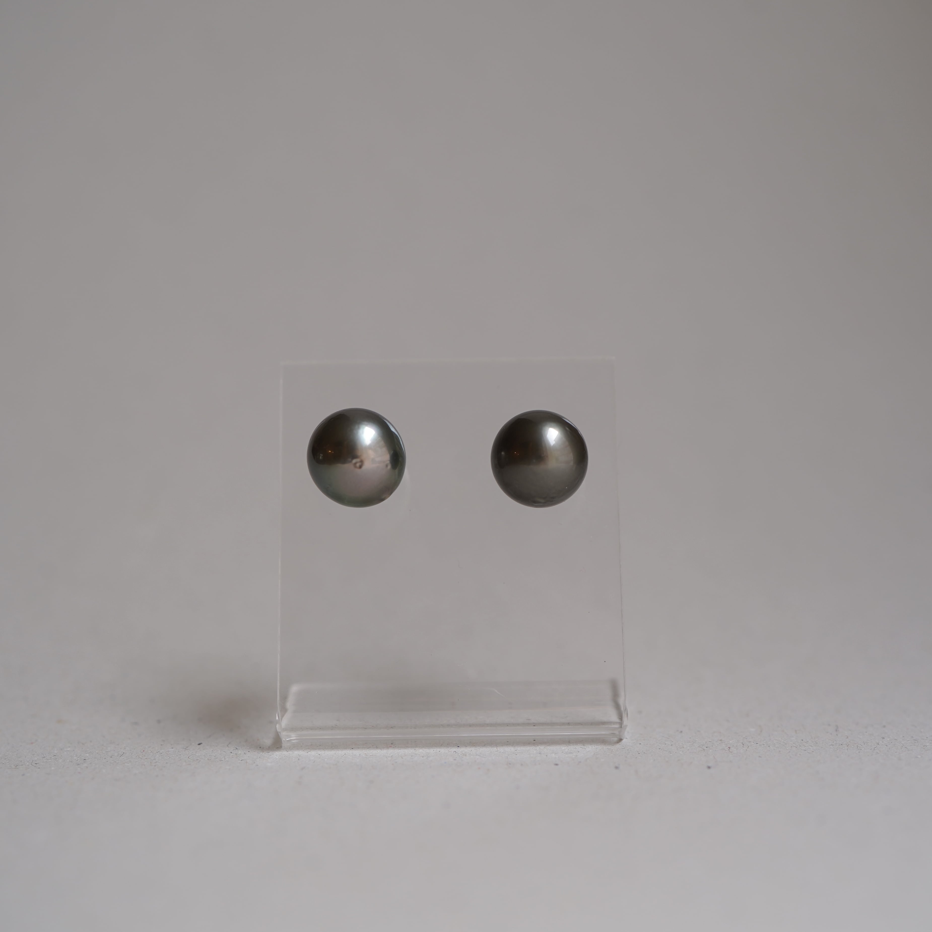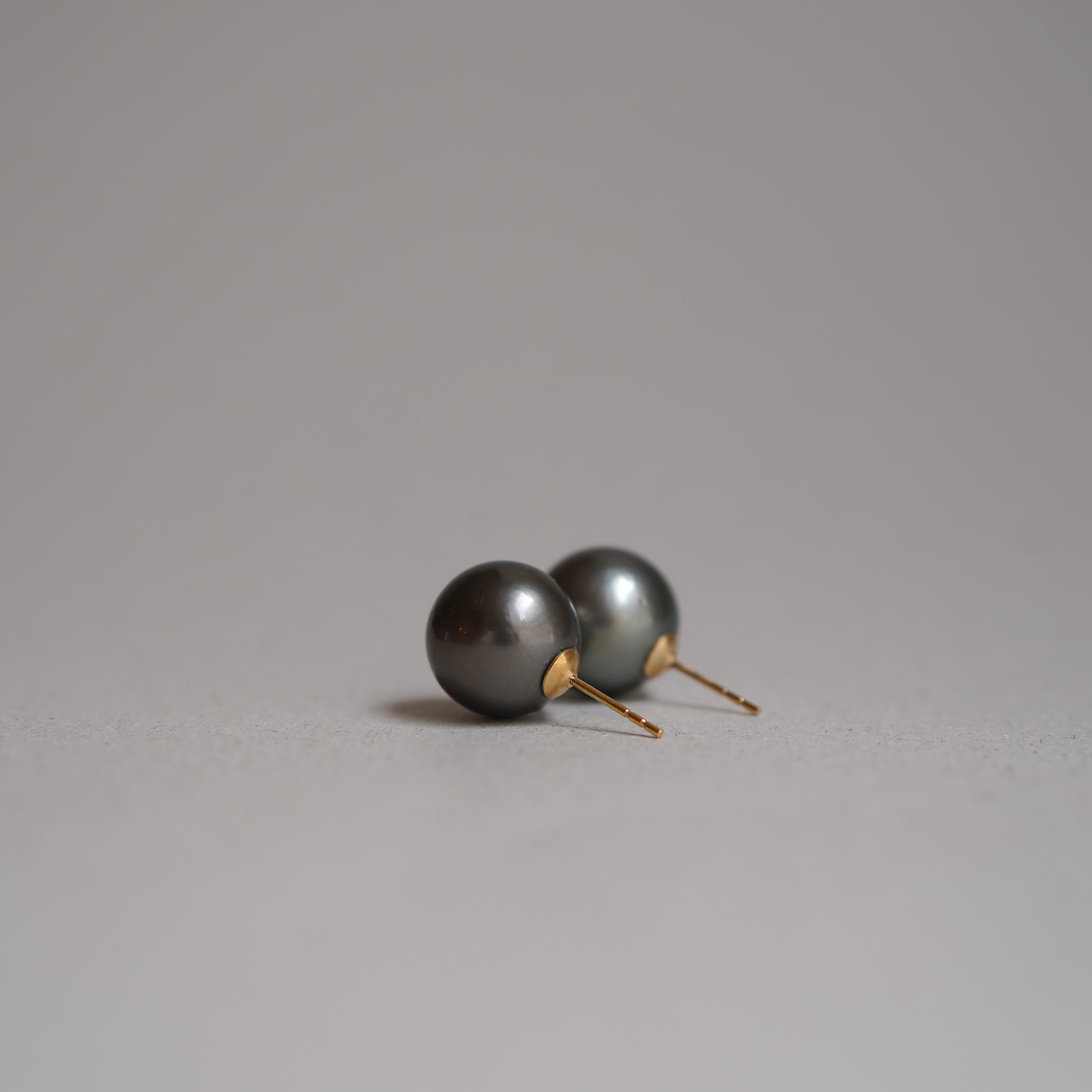 深みのあるグレーの輝きが美しい、南洋黒蝶真珠のピアス。
