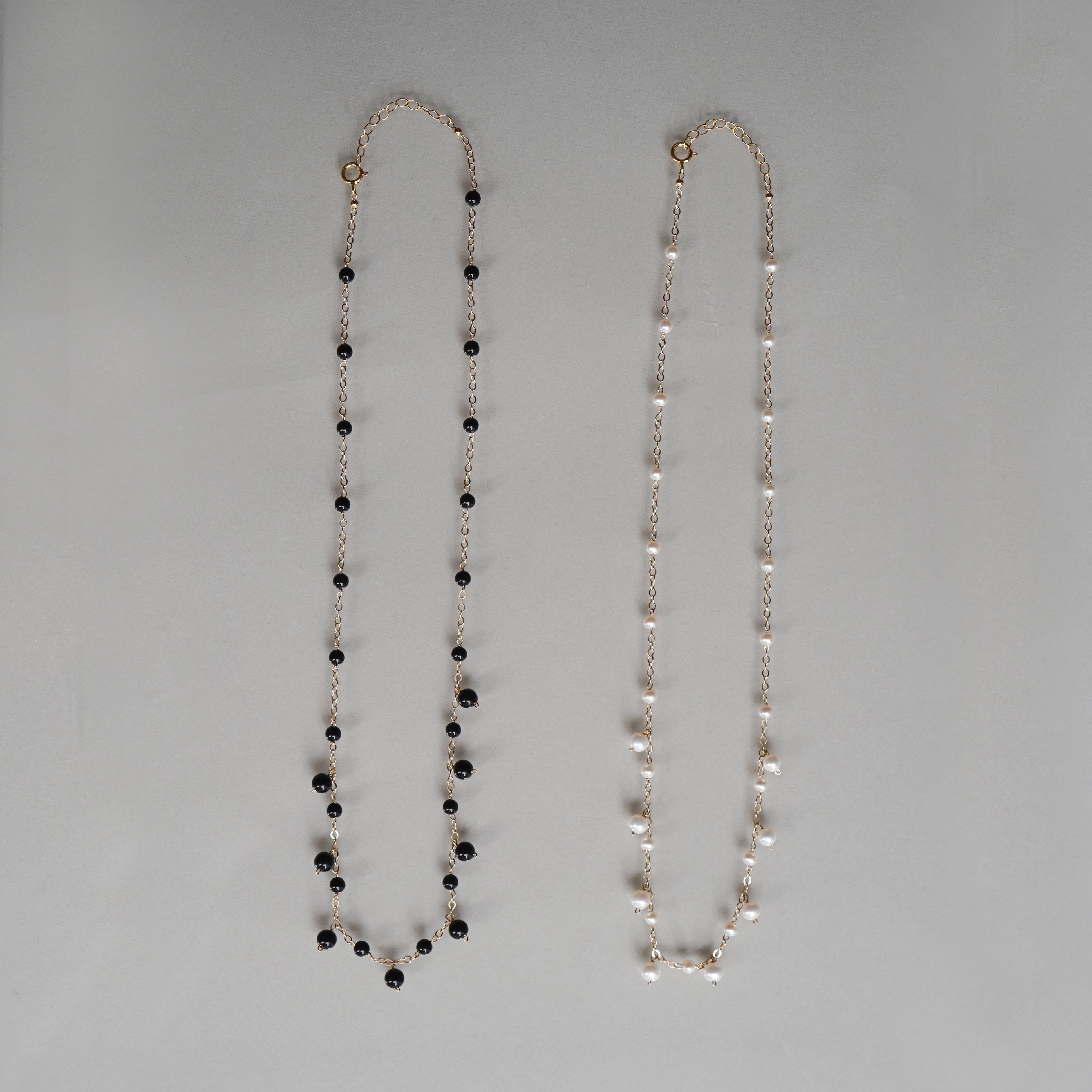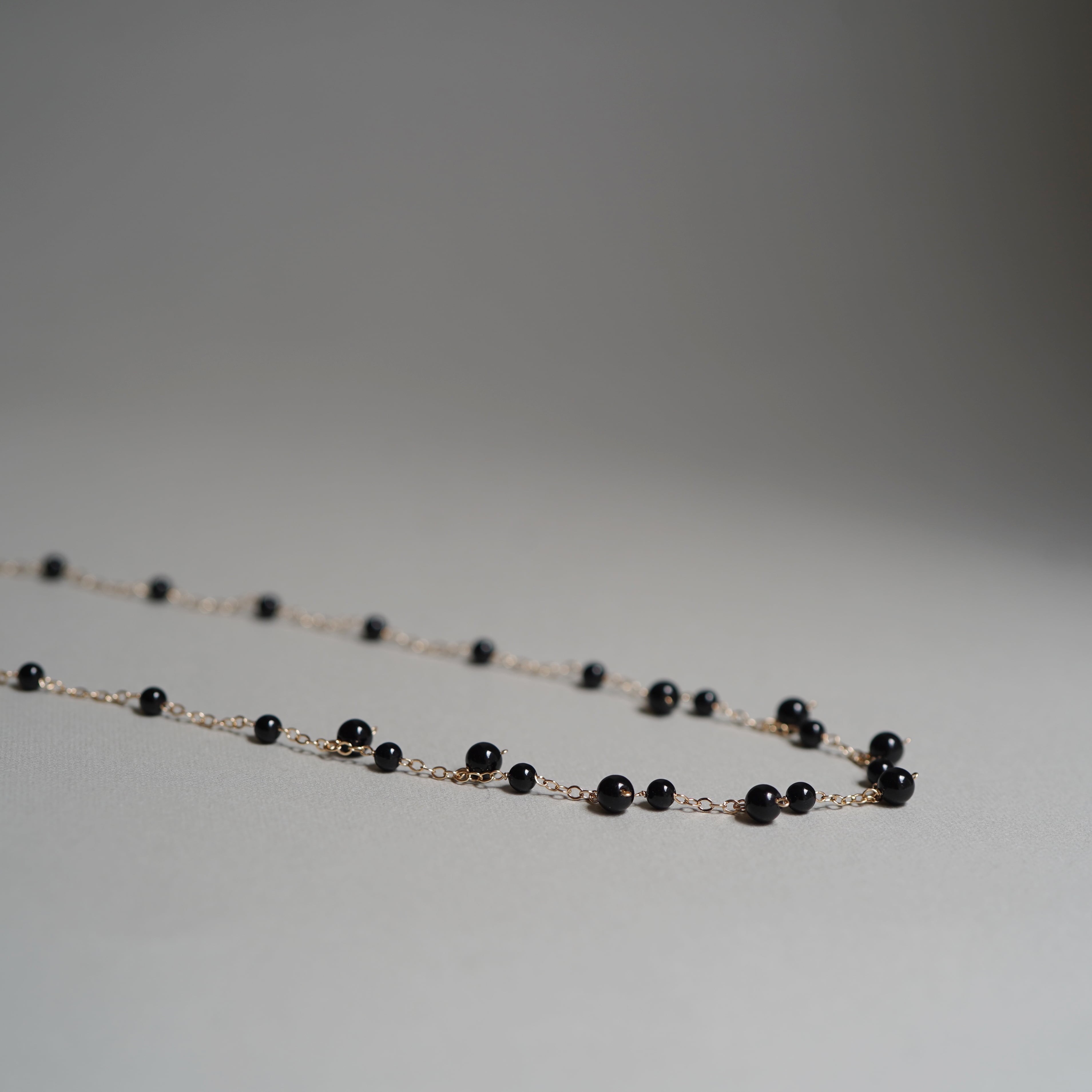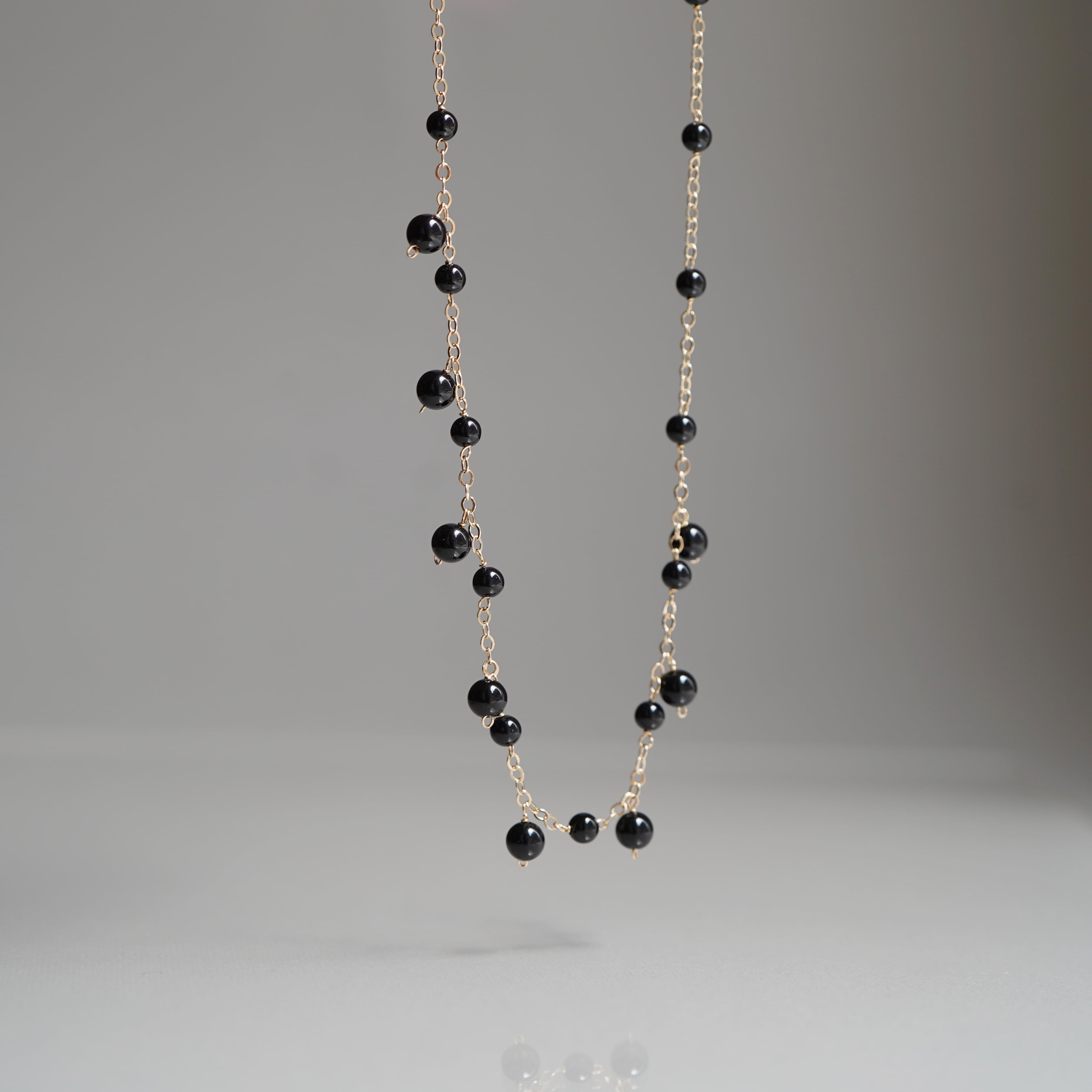 サイズ違いの淡水パール、オニキスを連ねたショートネックレス。