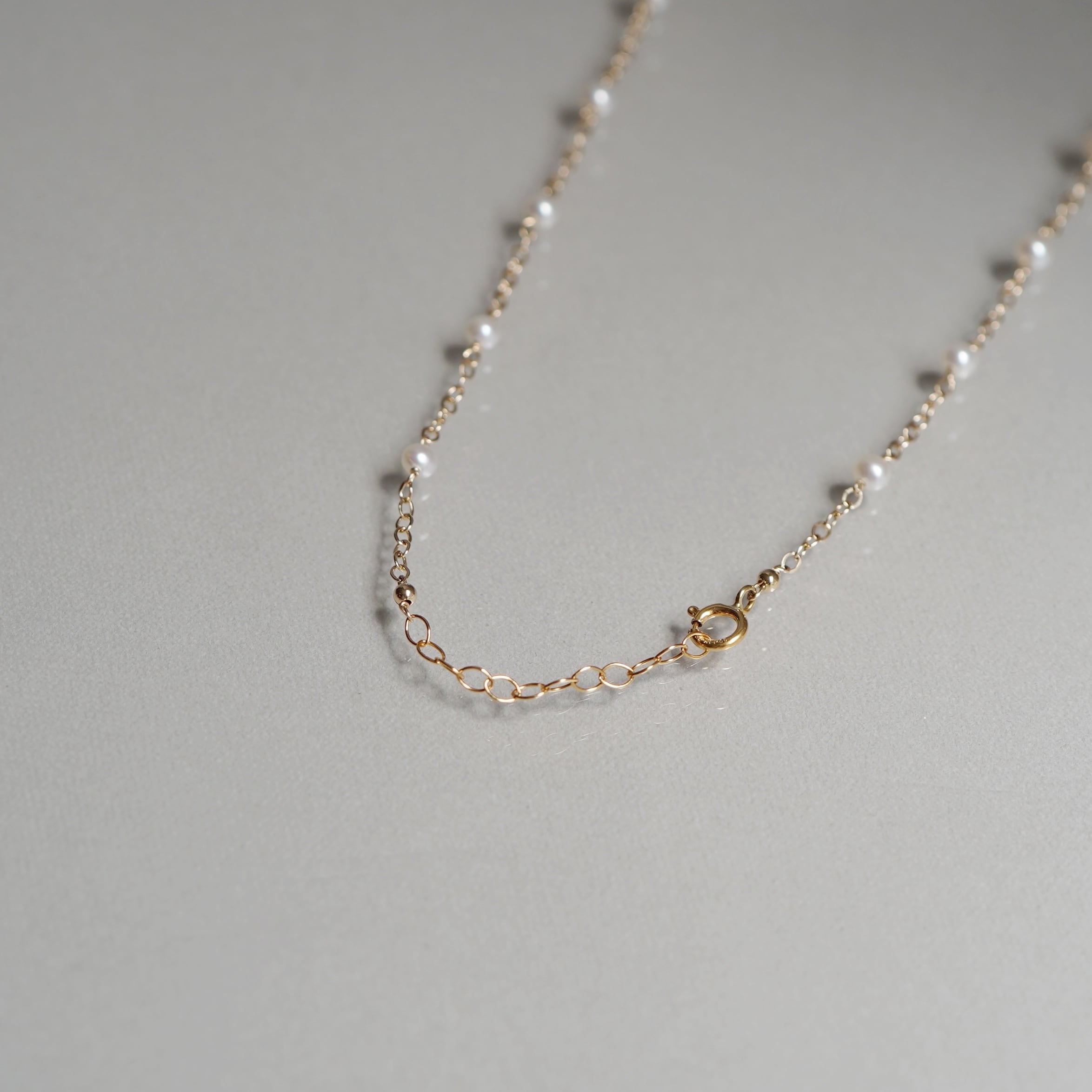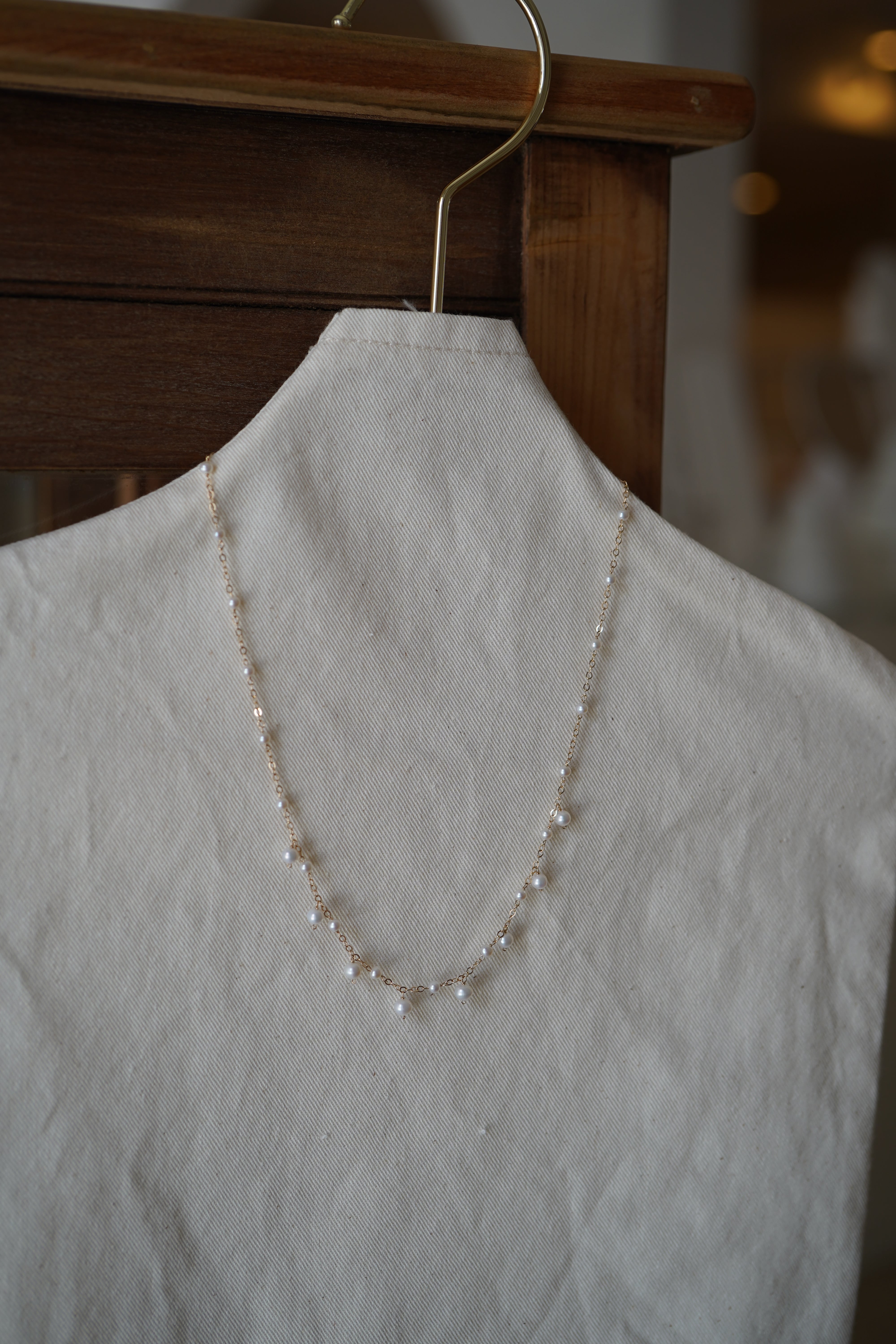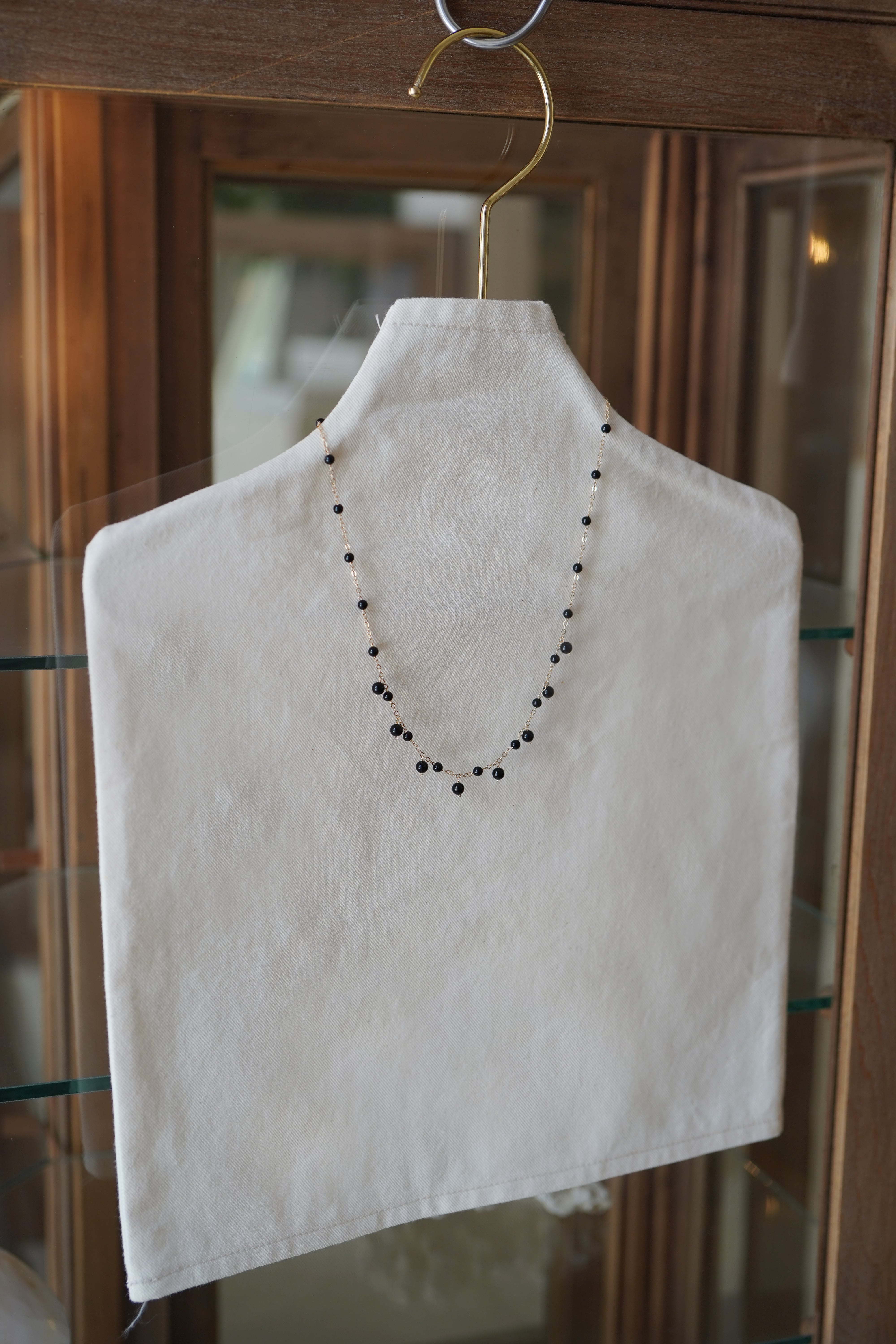サイズ違いの淡水パール、オニキスを連ねたショートネックレス。