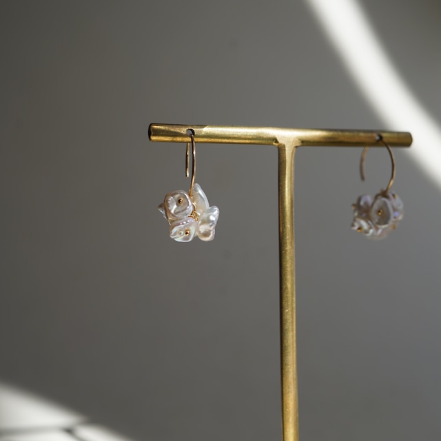 優しいフォルムのお花型淡水パールのピアス。